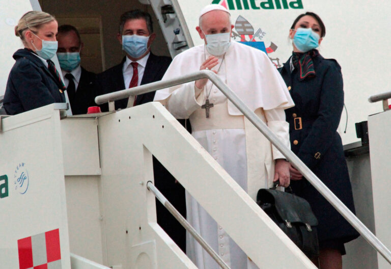 Setenta periodistas de todo el mundo acompañan al Pontífice en este viaje con el que retoma su agenda internacional tras el parón de la pandemia