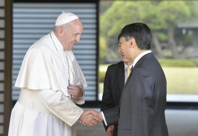 El Papa y el emperador de Japón: un apretón de manos a cambio de los fastos de antaño