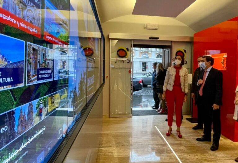 La ministra de Industria, Comercio y Turismo, Reyes Maroto, inaugura el Centro Multimedia Interactivo en Piazza di Spagna dedicado a fomentar que los peregrinos italianos participen en el Xacobeo 21-22