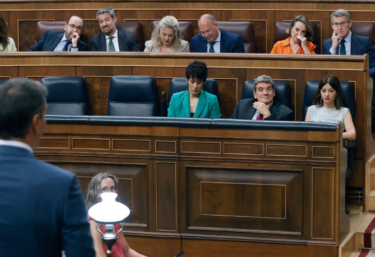 MADRID, 27/09/2023.- El presidente del Gobierno en funciones, Pedro Sánchez durante la segunda jornada del debate de su investidura en el Congreso este miércoles. EFE/Juan Carlos Hidalgo