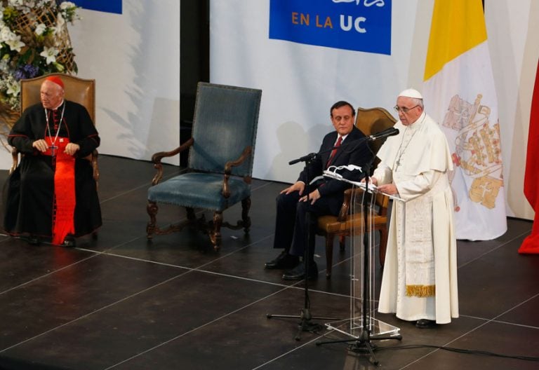 Francisco termina su segundo día en el país con una visita a la Pontificia Universidad Católica, ponirnfo en valor el papel de la comunidad educativa para favorecer la convivencia nacional