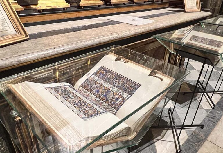 Distintos ejemplares históricos como son la biblia de la Biblioteca Capitular y la Colombina se irán exponiendo en la capilla de los Evangelistas