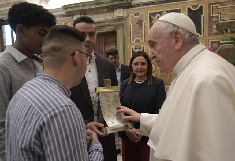 “La mafia destruye la esperanza, pisotea los derechos, pero Dios seguirá siempre los pasos de vuestra maravillosa criatura”, destacó el Papa