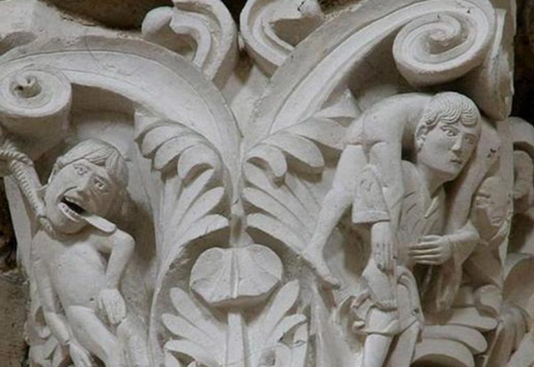 “Francisco nos invitó a contemplar un capitel medieval de la basílica de Santa María Magdalena en Vézelay, en la Borgoña (Francia). En este capitel, por un lado, está Judas ahorcándose, pero en el otro lado está el Buen Pastor que lo carga sobre sus hombros y lo lleva con él”