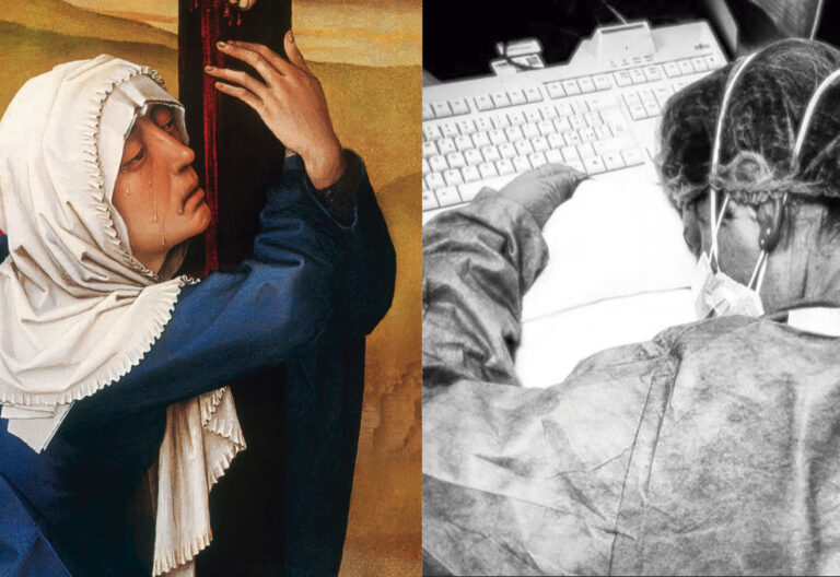 “Hemos visto y vemos a hermanas, hijas, madres y amigas con el alma perdida y el corazón roto por la distancia con sus seres queridos porque ahora es impensable dar un beso o un abrazo. Las hemos visto y vemos con ellos en el acto supremo de morir que solo puede celebrarse estrechando la mano de quienes permanecerán unidos a nosotros para siempre, legados por el Amor, el hilo dorado de la eternidad”.