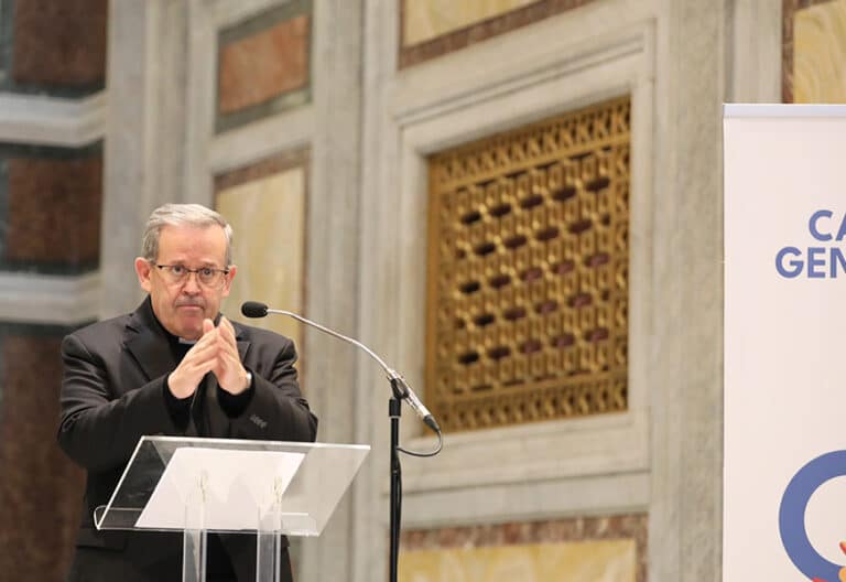El secretario para las Relaciones con los Estados y las Organizaciones Internacionales, el arzobispo Paul Richarc Gallagher, participa en una conferencia de la asociación internacional Carità Politica