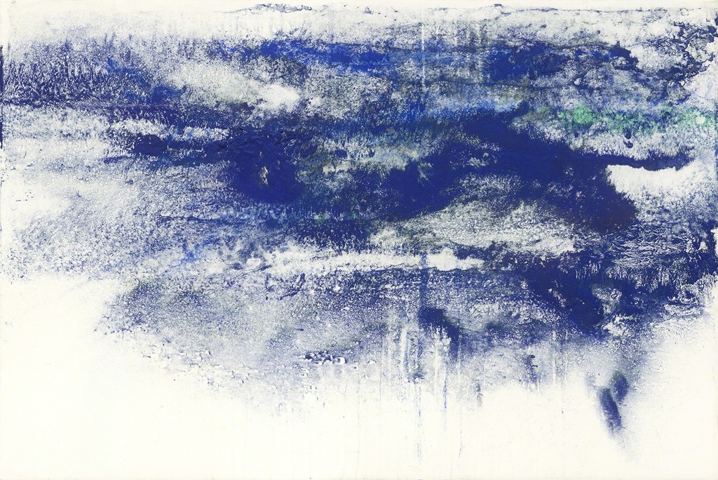 Caminar sobre el agua-Azurita es una de las creaciones más importantes del artista nipón-estadounidense Makoto Fujimura –’Walking on Water-Azurite’ (2012)–. Es una obra imponente; un cuadro de gran formato, de 2 x 3,5 metros, que es difícil de concebir sin contemplar en directo. Las fotos no le pueden hacer justicia, el espectador tiene que verlo por sí mismo.