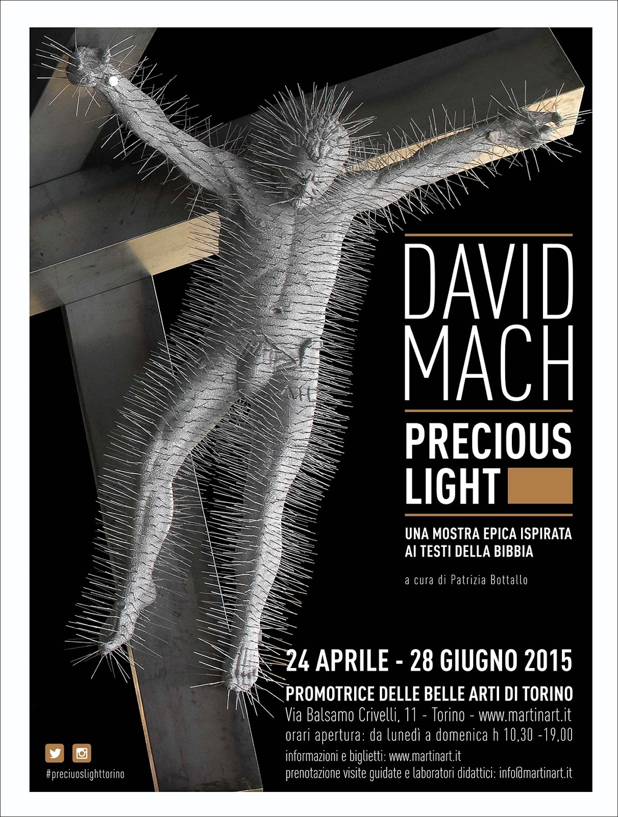 En 2015 la exposición ‘Precious Light’ fue mostrada en Turín y la comisaria de ésta explicaba el carácter monumental que ha conseguido Mach. ‘Precious Light’ es “una propuesta llena de épica, en la cual la narrativa bíblica, apocalíptica y colosal, no es una simple citación sino un conmovedor relato de la contemporaneidad de sus dramas y sus esperanzas. La deslumbrante representación de las Sagradas Escrituras captura la actualidad: grandes collages compuestos de imágenes de lugares públicos de masas y gente real tomadas de revistas, periódicos, televisión, publicidad, webs. David Mach aborda las emergencias políticas y sociales con un lenguaje tanto actual como clásico, poético como trágico” (Botallo, 2015). En sus palabras, “soy consciente de que ha resultado ser no sólo la celebración del cuarto centenario de la Biblia del Rey Jacobo sino una presentación de la misma naturaleza del mundo en que nosotros estamos en este momento viviendo.” (Mach, 2011).