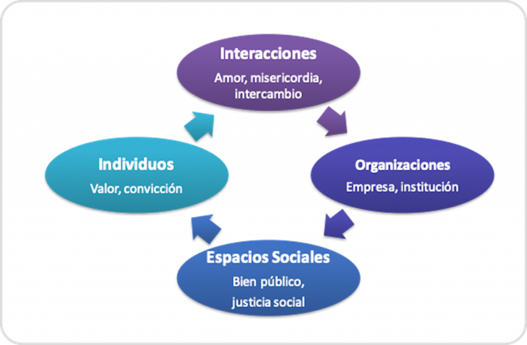 Finalmente, el bien social retroalimenta a la naturaleza del individuo y el impacto es mayor cuando el individuo que recibe retroalimentación se encuentra en formación. Por ejemplo, un padre o madre que regresa del trabajo manda un mensaje de bien social muy poderoso a sus hijos, especialmente cuando el fruto del trabajo permite ir más allá de la subsistencia y avanzar hacia el bienestar familiar. Del mismo modo, lo que retroalimentamos a los medios sociales, genera un efecto recurrente, no solo sobre nuestro modo de ver el mundo, sino también en el significado colectivo que forjamos para nuestro entender social.