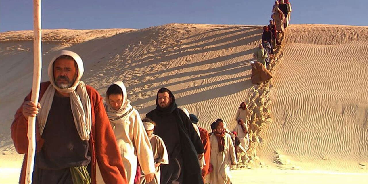 Moisés liderando al pueblo de Israel en su marcha por el desierto