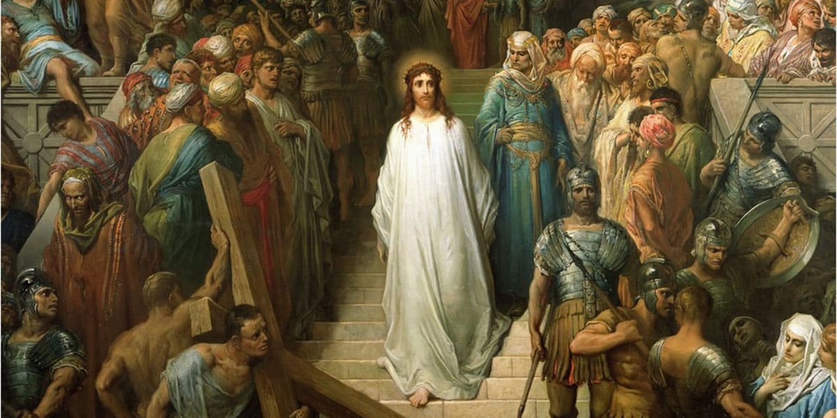 En la búsqueda, cuando me acerco a una de las estancias abiertas al pasillo central, me encuentro frente a estos dos muchachos, solos, en medio de la sala, contemplando un cuadro de grandes dimensiones, que yo aún no alcanzaba a ver. El más joven, medio paso más atrás del más alto, a su lado. Tuve que cerciorarme, pero el chico que observaba fijamente la escena del cuadro estaba llorando, dejando resbalar las lágrimas por sus mejillas. Quedé impresionado por su ensimismamiento, ajeno al bullicio del exterior. El óleo de gran formato que contemplaban era ‘Cristo bajando del pretorio’, de Gustave Doré, el famoso ilustrador de la Biblia, El Quijote y la Divina Comedia.
