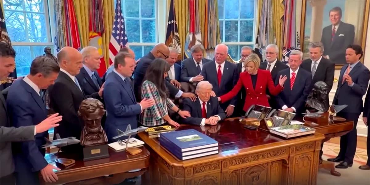 Me pone los pelos de punta ver a ese conjunto de líderes, representantes oficiales de tantos cristianos, extendiendo sus manos para bendecir y respaldar en nombre del Dios de Jesús a un presidente cuyas políticas no me suenan a Evangelio. En pleno conflicto internacional y mientras llueven bombas de un lado y de otro, la foto suena a intentar convertir sus iniciativas bélicas en una especie de “cruzada divina” que, personalmente, me parece una verdadera blasfemia.