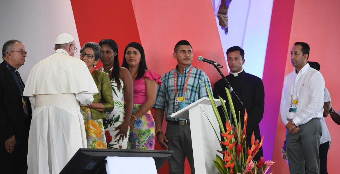 Dicho y hecho, porque la clave del acto de Villavicencio ha sido el protagonismo de las víctimas a través de sus testimonios: Juan Carlos Murcia Perdomo que durante doce años formó parte de las FARC y que se dedica actualmente a recuperar a jóvenes a través del deporte como elemento para aprender “la pasión por la verdad y la libertad”; Deisy Sánchez Rey que perteneció a las AUC y que hoy es una psicológica empeñada en acompañar procesos de “rehabilitación por consumo de sustancias psicoactivas”; Luz Dary Landazury, víctima de una explosión de una bomba y testigo de la misericordia para las demás víctimas; y Pastora Mira García, que tras perder a su padre, a su primer esposo y a tres hijos, pidió a Dios que “transforme el corazón de quienes se niegan a creer que con Cristo todo puede cambiar y no tienen la esperanza de un país en paz y más solidario”.