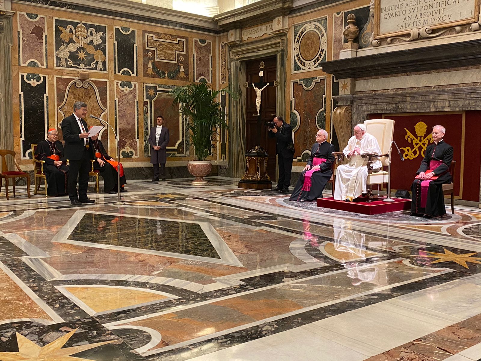 Hacia las 11:00 a.m. el Dr. Paolo Ruffini, Prefecto del Dicasterio nos informó que debíamos cerrar la sesión para disponernos a la audiencia con el Santo Padre. Estábamos relativamente cerca de la Sala Clementina, pero es bien sabido que los protocolos del Vaticano exigen estar con suficiente antelación.