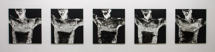 Los cinco cuadros forman una serie que no tiene comienzo ni final. Son arbitrariamente cinco pero podrían ser muchos más, es una serie sin fin. Y en ellos se muestra el viaje de los clavos por el cuerpo interior de Cristo. Y, efectivamente, como los clavos solamente se mueven en cuerpos vivos, Yaloza nos transmite un mensaje de gran profundidad: Cristo sigue vivo.
