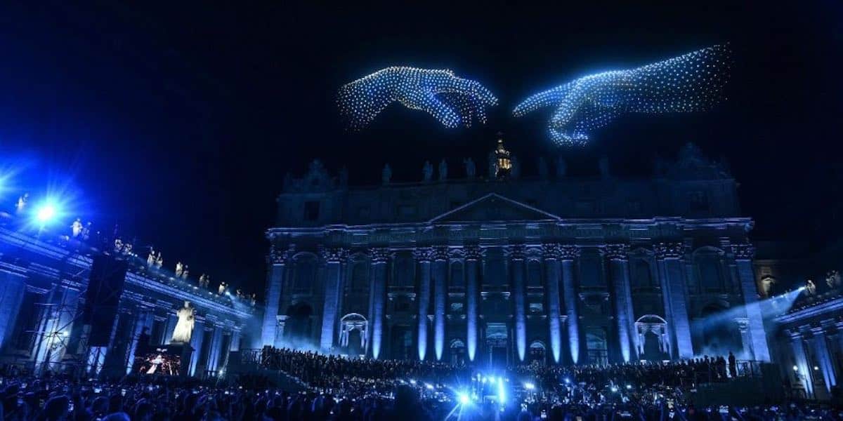 León XIV parece continuar esa apertura. Lo novedoso no fue tanto la música en sí, sino la escala y la diversidad: un espectáculo global con artistas de distintos géneros, acompañado por un despliegue tecnológico impresionante, más de 3,000 drones dibujando escenas de la Capilla Sixtina en el cielo de Roma.
