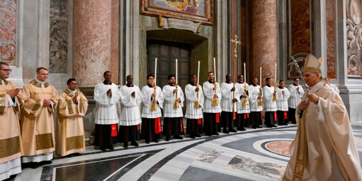 Aunque no tiene papel relevante en el rito, León XIV estrenó su nuevo báculo pastoral –ya que los expertos discuten si considerarlo una férula, el báculo específico del papa con los tres brazos horizontales–. En estos meses el Papa ha usado dos modelos. El que más ha empleado es la cruz que hizo para Pablo VI el escultor napolitano Raffaele ‘Lello’ Scorzelli y que se estrenó en la clausura del Vaticano II. Con este cayado se ha inmortalizado tantas veces a Juan Pablo II hasta sus últimos días. También la utilizó casi en exclusiva Juan Pablo II y en muchas ocasiones Francisco –que incluso tuvo un accidente durante su uso en Bosnia–.