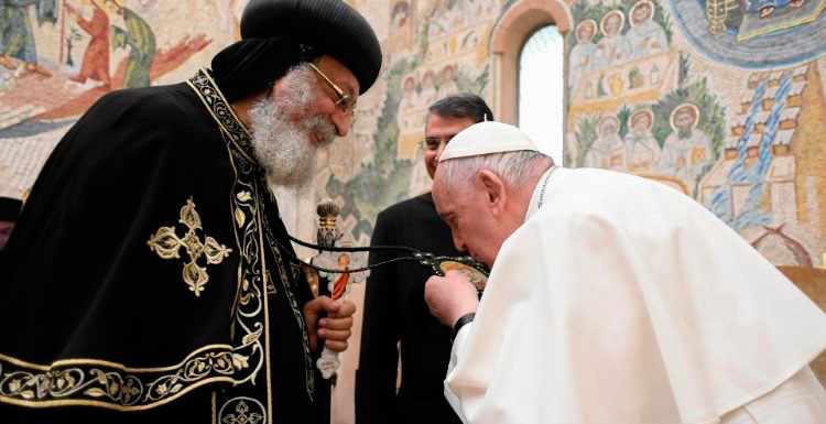 “¡Que esta visita nos acerque un paso más al bendito día en que seremos uno en Cristo!” fue el deseo del papa Francisco. Asimismo, “le agradezco sinceramente su compromiso con la creciente amistad entre la Iglesia ortodoxa copta y la Iglesia católica”, agregó tras recordar también que es la segunda vez que se encontraban en el Vaticano, pues hace diez años, al poco tiempo de ser elegidos papas ambos, se vieron y Tawadros II le propuso celebrar a partir de entonces el Día de la Amistad Copto-Católica, que han celebrado puntualmente cada año –parece que hasta ahora–. El patriarca copto destacaba entonces que los cristianos “hemos elegido el amor, aunque vayamos a contracorriente del mundo codicioso y egoísta; hemos aceptado el desafío del amor que Cristo nos pide y así seremos verdaderos cristianos y el mundo se hará más humano, porque el mundo entero sabrá que Dios es amor y que este es su nombre más alto”.