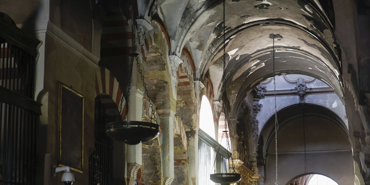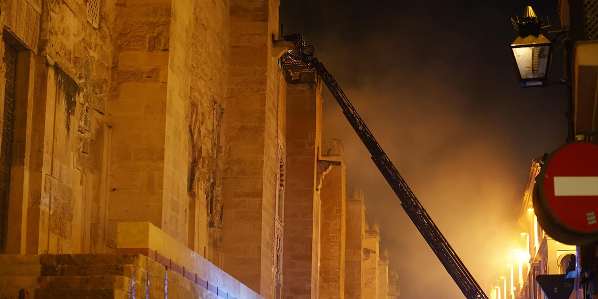 Trabajos en el interior de la mezquita-catedral después del incendio. Foto: EFE