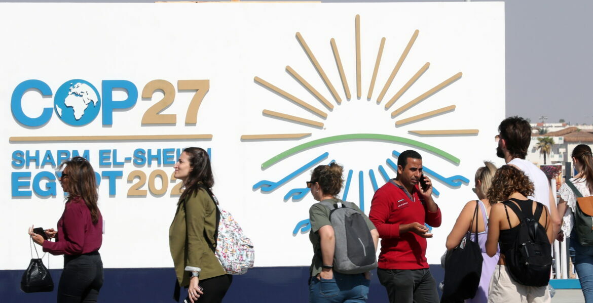 La gente espera para entrar en el Centro Internacional de Convenciones de Sharm El Sheikh, durante la apertura de la cumbre climática COP27, en Egipto