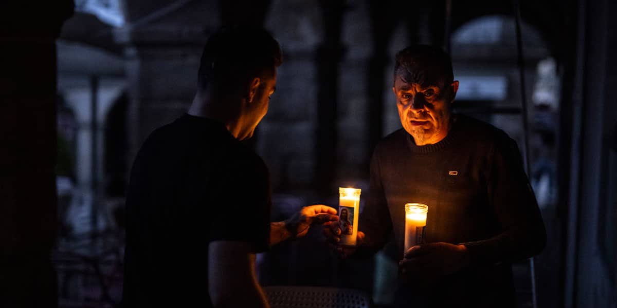 Dos hombre de Orense con velas en medio del apagón