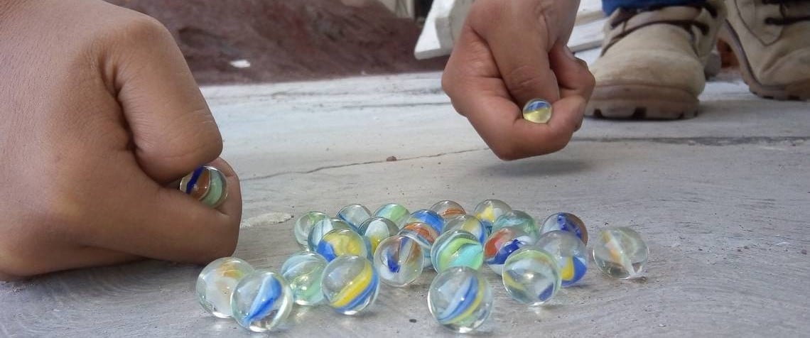 Niños jugando a las canicas