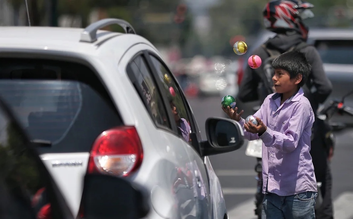 Aquel niño comienza a lanzar unas pelotas al aire, todo por unas cuántas monedas, llama mi atención aquella acción y de manera automática busco a las personas que le acompañan, las descubro y veo a una mujer no mayor de quince años quien carga otro pequeño en sus brazos, seguramente se trata de su madre quien está observando a su hijo en aquel acto en la vía pública.