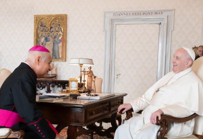 Claudia Sheinbaum destaca que en llamada telefónica reciente con el Pontífice, este no dijo cuando haría su visita pero “después nos da la fecha, todavía no está la fecha”