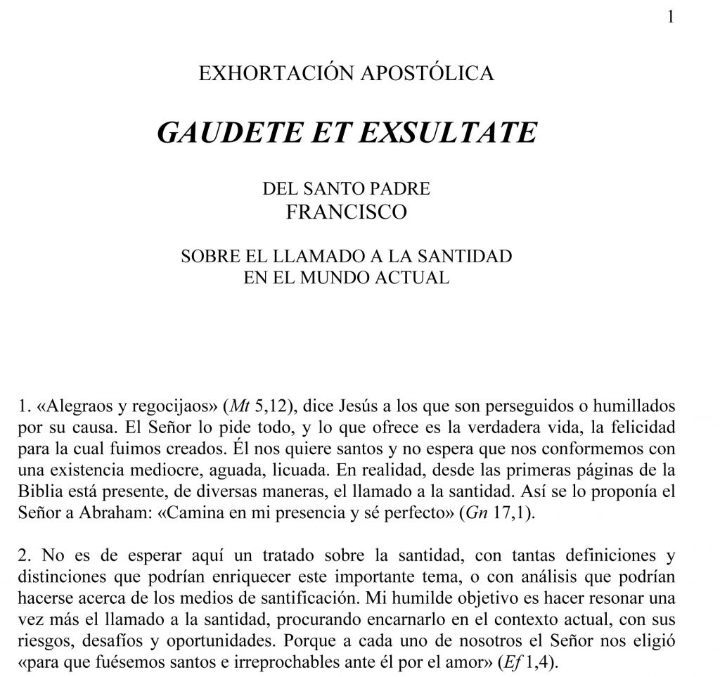 Especial exhortación apostólica ‘Gaudete et exsultate’