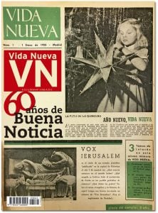 El 1 de enero de 1958 veía la luz en Madrid la revista Vida Nueva. Heredaba más de un centenar de números de Pax, publicación quincenal nacida en el seno de la editorial PPC. “Cambia de nombre, pero no de apellido”, sugería el eslogan de la campaña de lanzamiento que permitió alcanzar en poco tiempo los 20.000 lectores y, en apenas unos meses, pasar de quincenal a semanal.