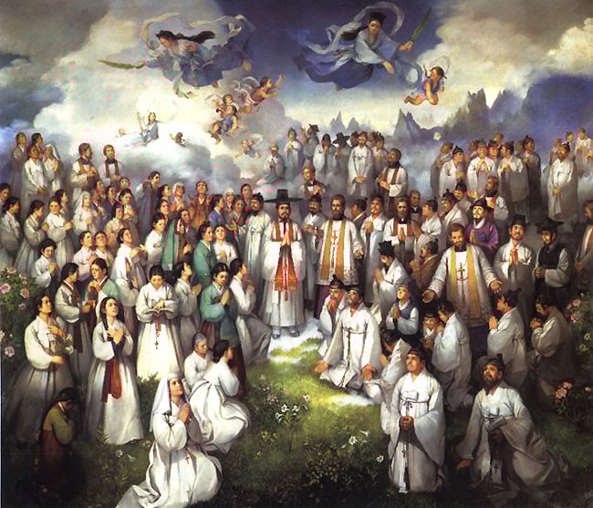Tapiz de la canonización, por san Juan Pablo II en 1984, de 103 mártires de Corea del siglo XIX.