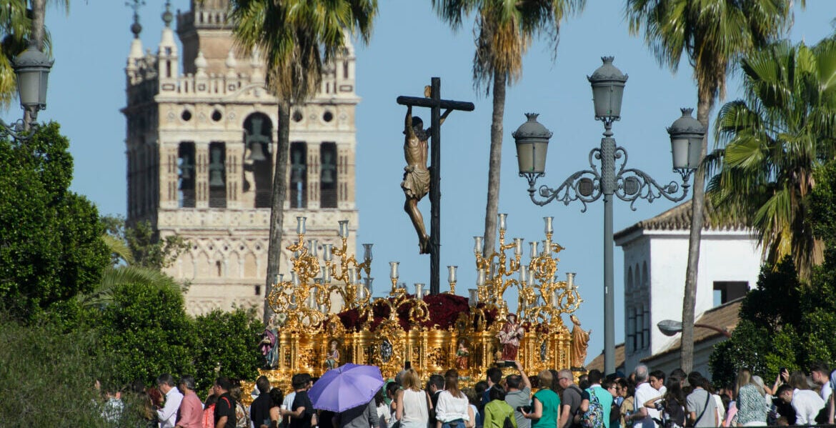 La procesión del Cristo del Cachorro a su paso por el puente de Triana, la tarde de Viernes Santo en Sevilla