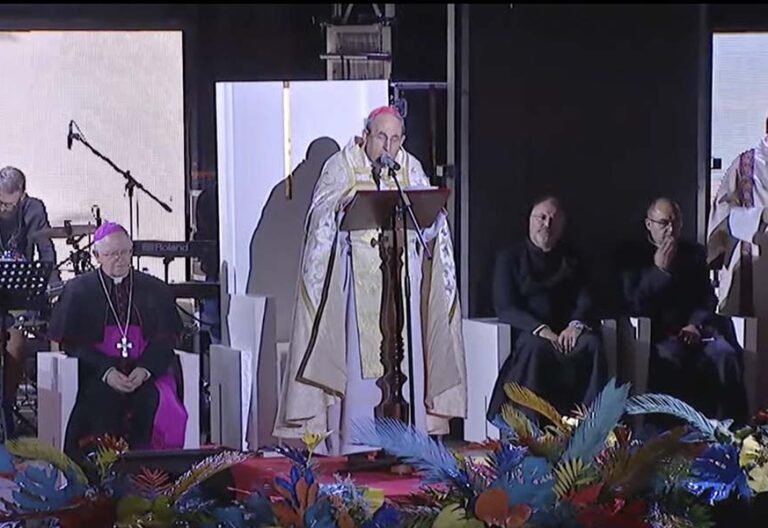 El delegado pontificio preside una vigilia de oración en el Monte del Gozo al final de una tarde en la que la música fue la gran protagonista