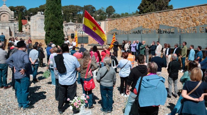 El vicario general, Joan Àguila, acudió ayer al cementerio municipal para participar en el acto que este año coincide con el 93º aniversario de la proclamación de la II República