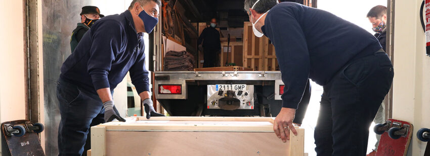 Durante la madrugada, técnicos del Gobierno de Aragón se encargaron de supervisar el embalaje y el traslado de las piezas depositadas en el MNAC de Lleida