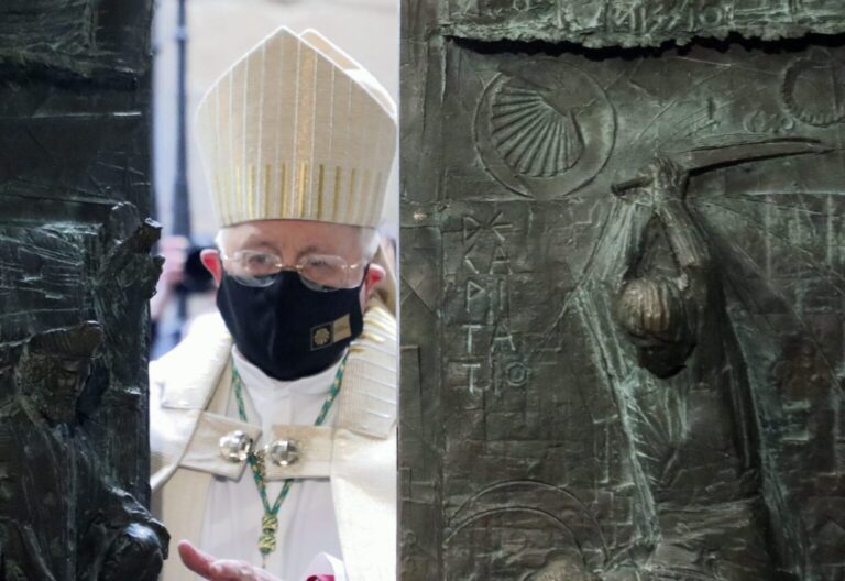 La nueva escultura del artista Timothy Schmalz fue bendecida hoy en la Oficina de Acogida al Peregrino