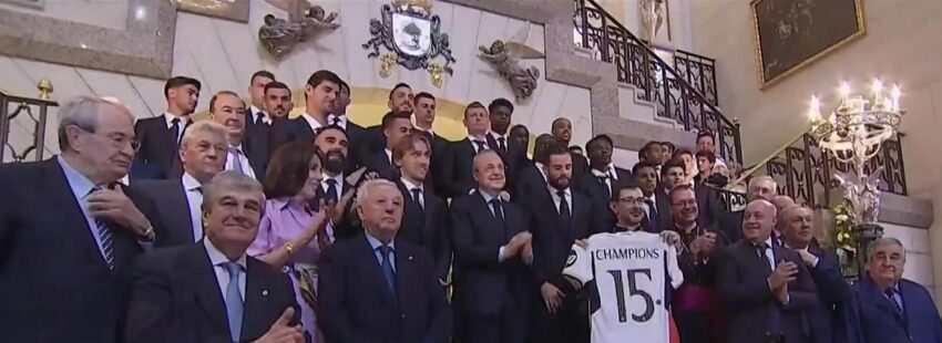 El club blanco ofrece la 15º Copa de Europa a la patrona de la capital, Nuestra Señora de la Almudena, en una catedral repleta de niños