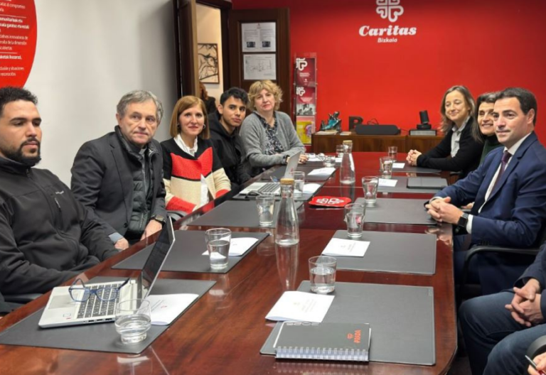 El presidente vasco visita la sede de la plataforma social de la Iglesia y conoce de primera mano el centro Hargindegi, donde se ofrecen servicios esenciales para familias y personas migrantes