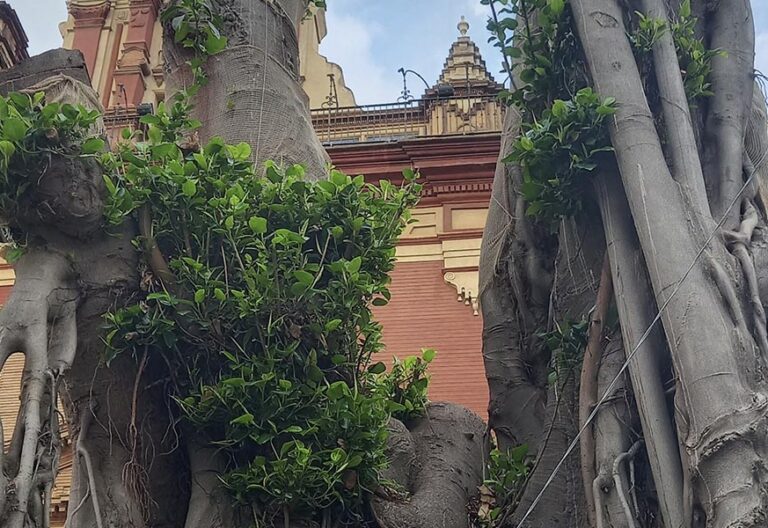 El polémico árbol de los dominicos de Triana ha comenzado a rebrotar a los dos meses de la detención de la tala mientras en la iglesia surgen nuevas grietas