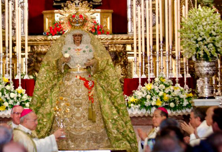Edgar Peña Parra entregó el regalo del Pontífice a la basílica sevillana como antesala del congreso internacional de religiosidad popular que arranca hoy