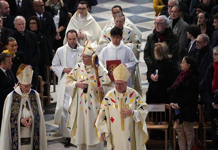 Laurent Ulrich preside la eucaristía inaugural en la que participaron el presidente Emmanuel Macron y su esposa