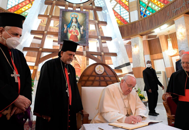 El Papa conquista a los iraquíes con su plegaria por las víctimas de la guerra en la que recordó que “a nosotros no nos es lícito matar a los hermanos, hacer la guerra u odiar a los hermanos en nombre de Dios”