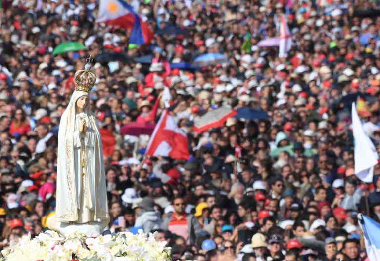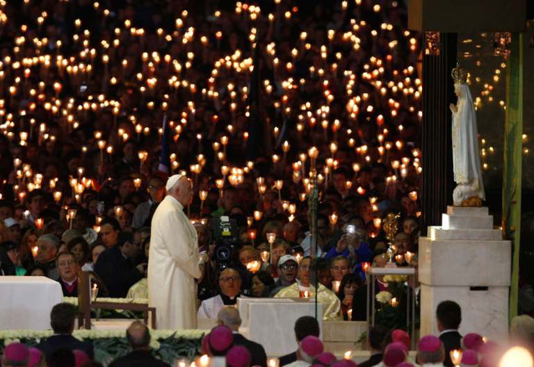 Tras pedir disculpas a los portugueses por no poder alargar la visita, pide que se unan a él física o espiritualmente para “componer mi ramo de flores, mi ‘rosa de oro’”