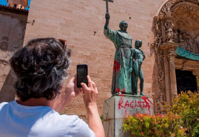 Una concejal de Podemos azuza la ira iconoclasta de Estados Unidos y es atacada la estatua de Junípero Serra en Palma de Mallorca