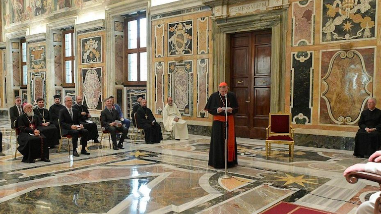 Un fuerte resfriado impide a Francisco pronunciar su discurso a un grupo de clérigos orientales con los que se reunió esta mañana en el Vaticano