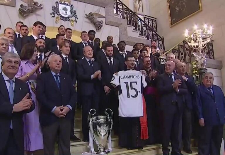 El club blanco ofrece la 15º Copa de Europa a la patrona de la capital, Nuestra Señora de la Almudena, en una catedral repleta de niños