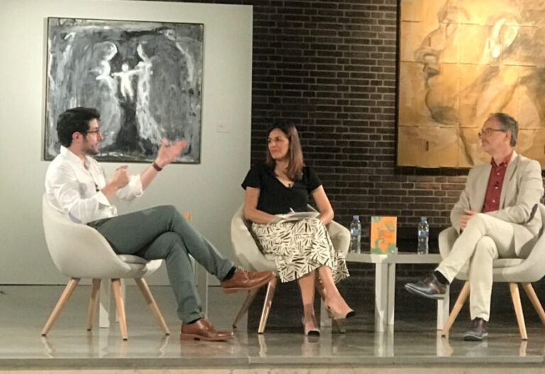 Ginés García Beltrán y la escritora protagonizaron un diálogo abierto en Móstoles que puso en valor la sed de trascendencia del ser humano