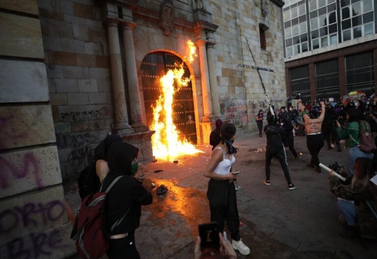 Un grupo de abortistas lanzó bombas molotov a las puertas del emblemático centro durante la jornada de protestas del 28 de septiembre