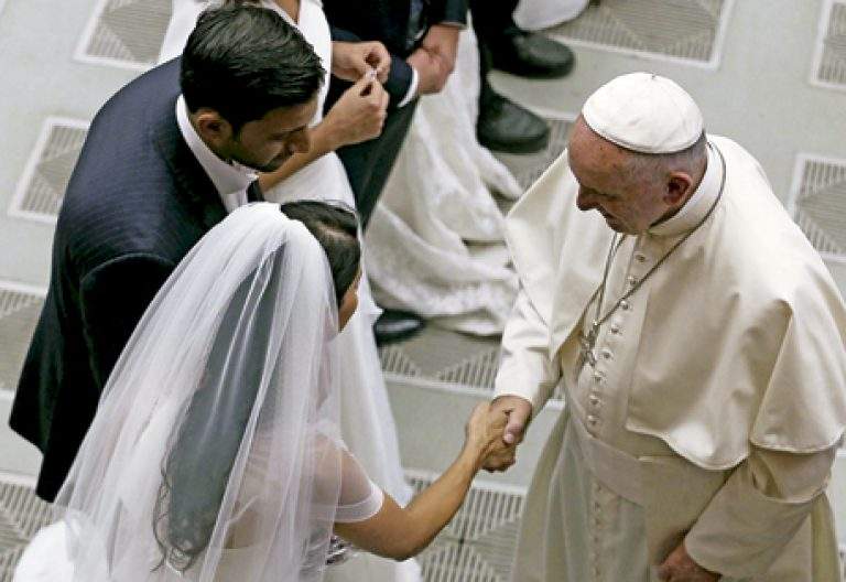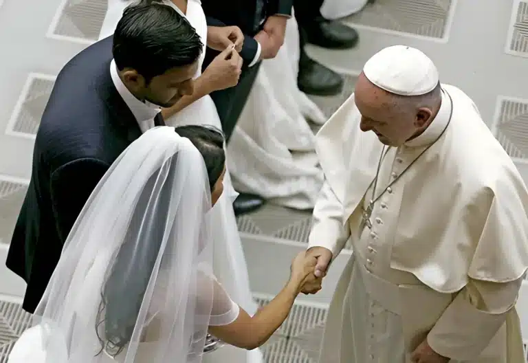 “Un aspecto ciertamente no secundario de la crisis que afecta a tantas familias es el desconocimiento práctico, personal y colectivo sobre el matrimonio”, ha afirmado el Papa