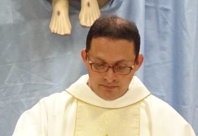 Se trata del padre Ángel Falzón O.F.M., quien actualmente es párroco de la Inmaculada Concepción en Aguanquerique, departamento de La Paz